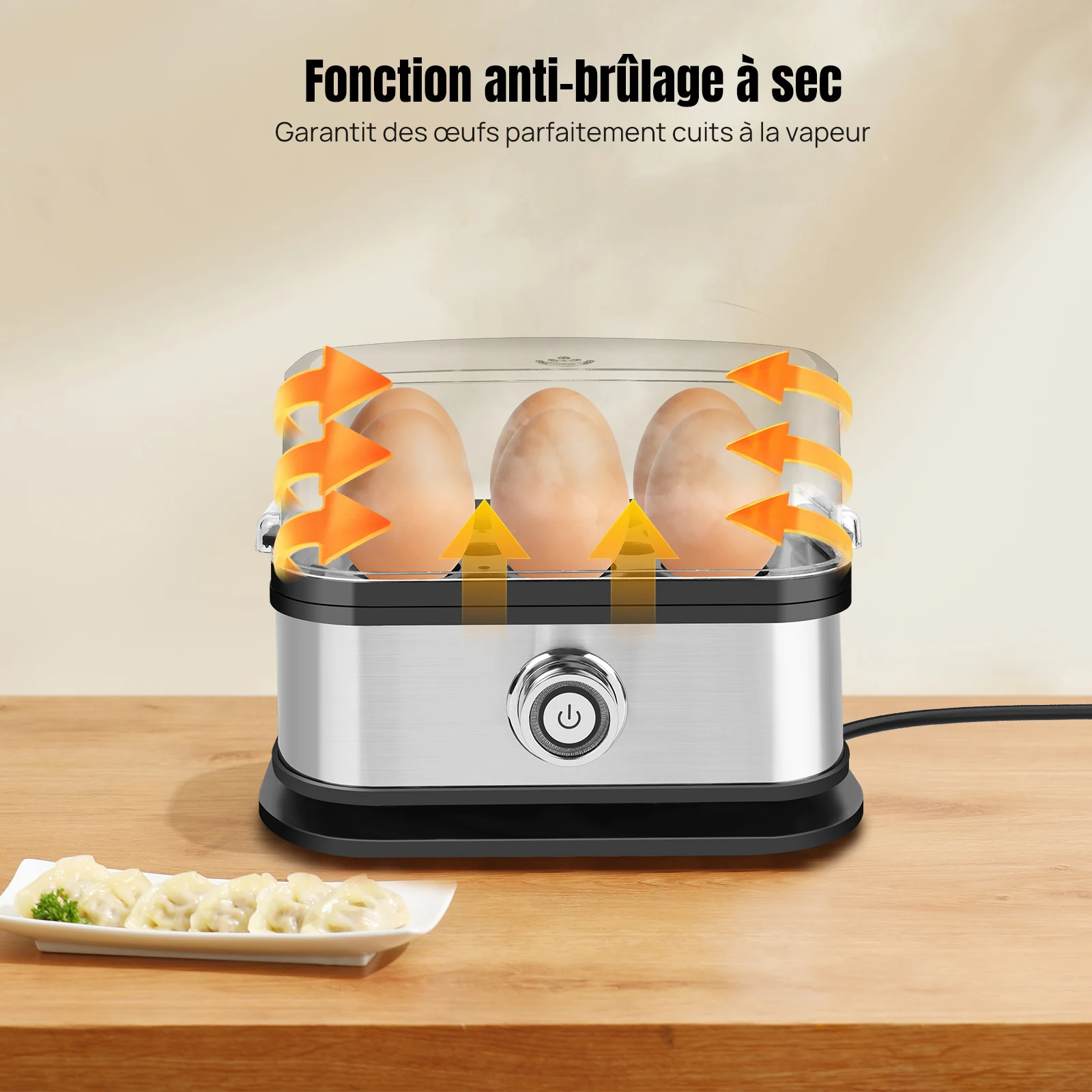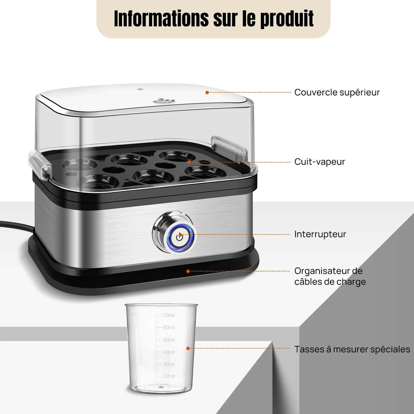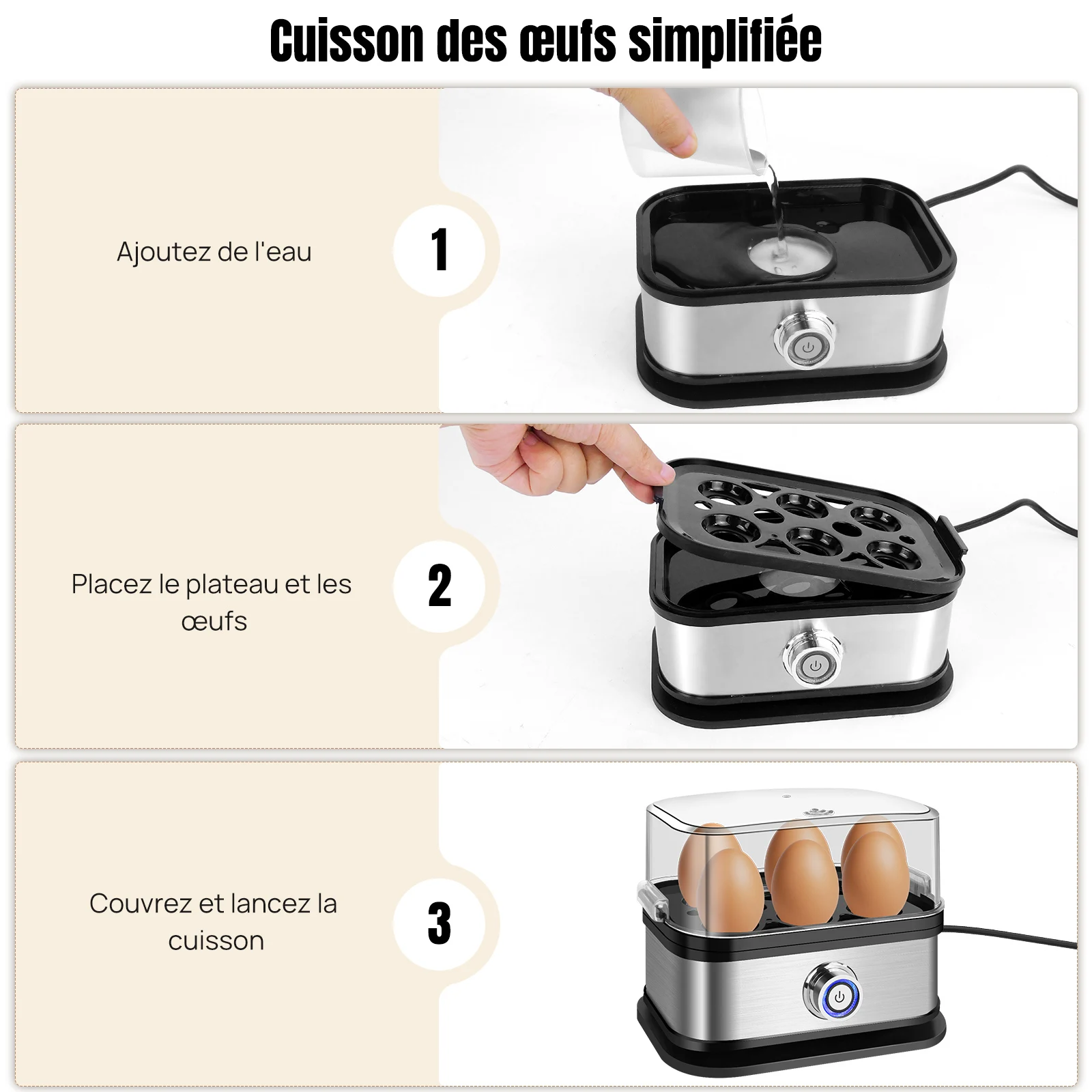 1x chaudière à œufs (avec plateau de cuisson à la vapeur amovible et couvercle)