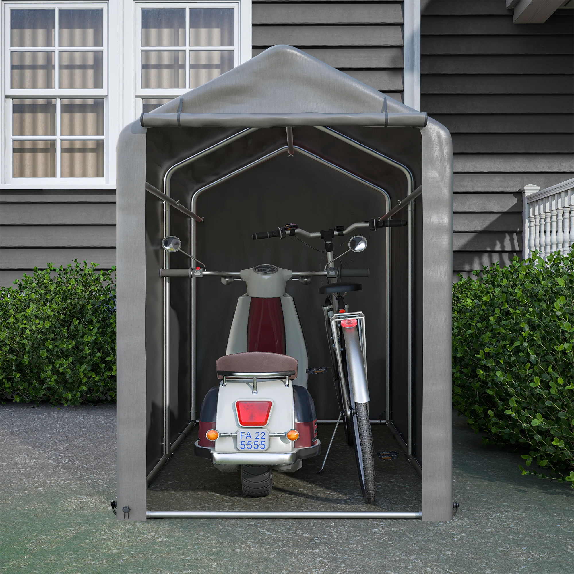 5. Utilisation multifonctionnelle : l’abri à vélos peut être utilisé non seulement pour stocker des vélos et des motos, mais également pour stocker des tondeuses à gazon, du bois de chauffage et d’autres outils de jardin pour répondre à vos différents besoins.