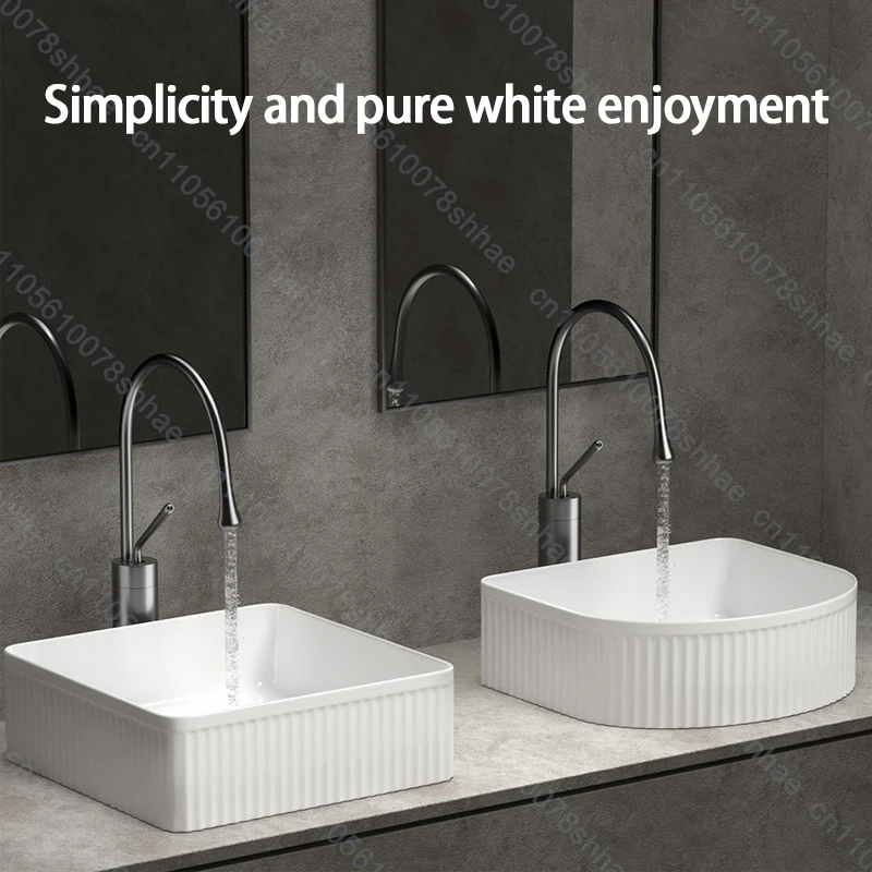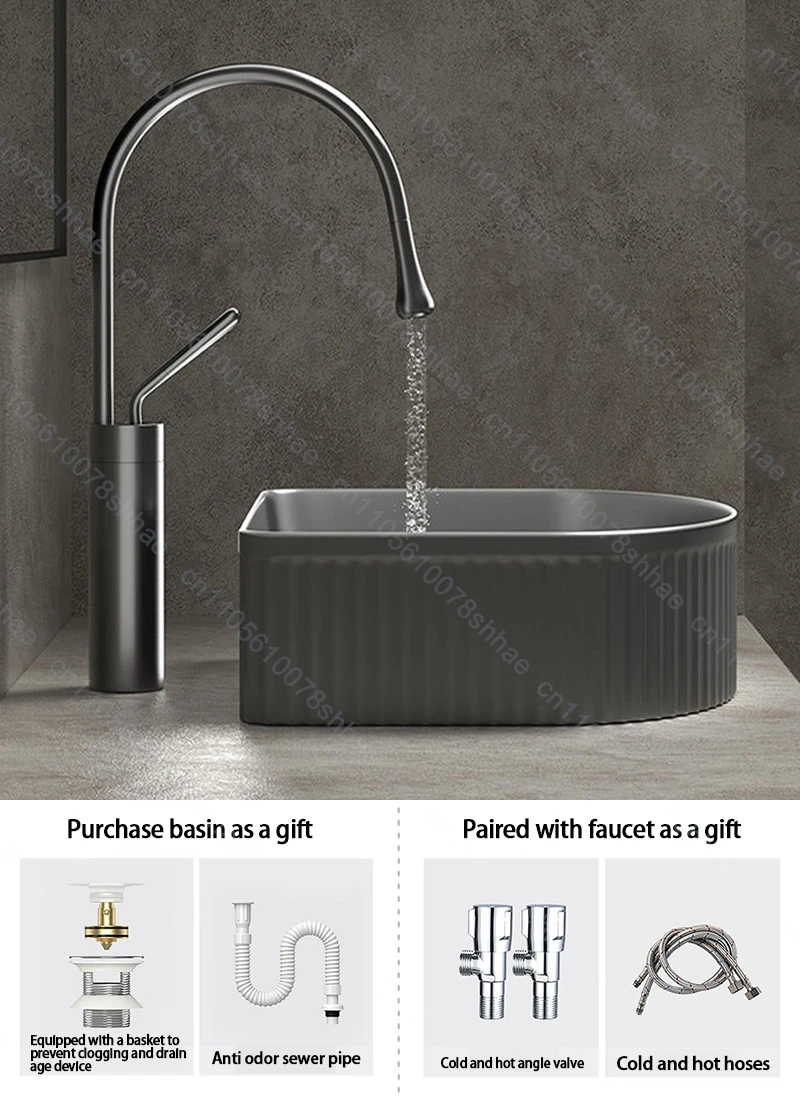 Vasque de luxe en céramique pour salle de bain, vasque d’art avec accessoires de vidange, ensemble de lavabos à poser.