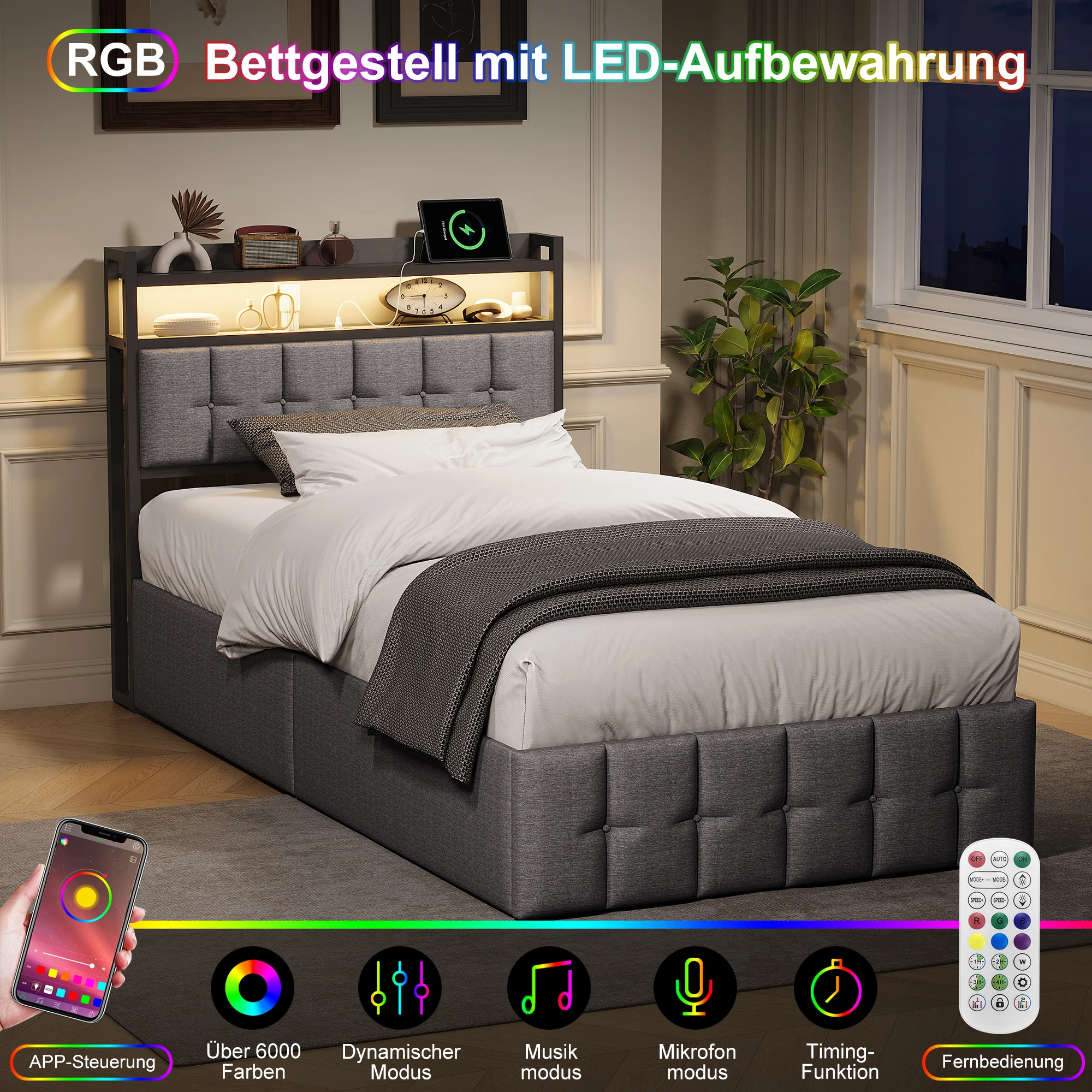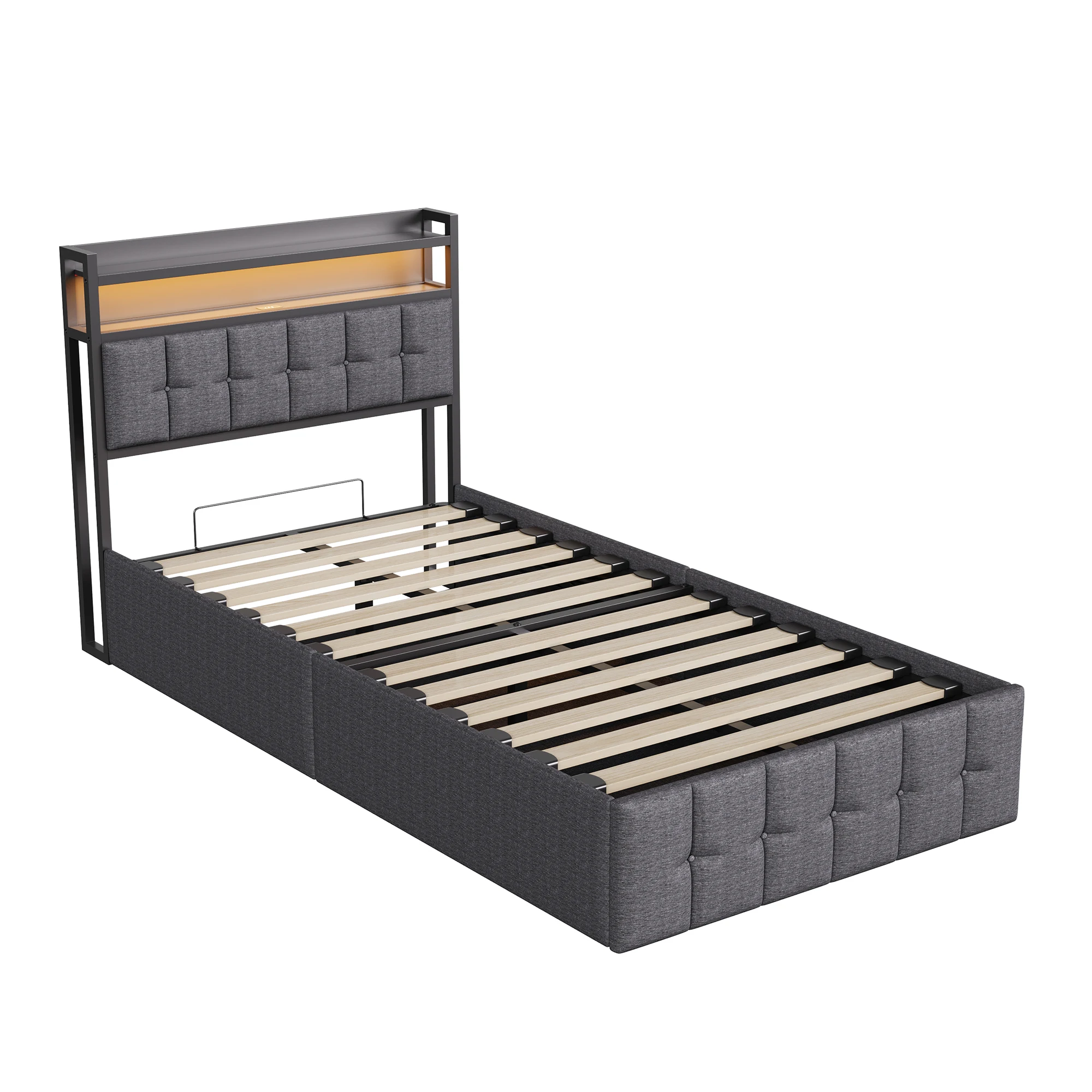 2.Lit avec espace de rangement hydraulique – Ce lit rembourré est doté d’un rangement hydraulique et le tiroir de rangement haut offre beaucoup d’espace de rangement, vous permettant d’organiser votre chambre rapidement et facilement.
