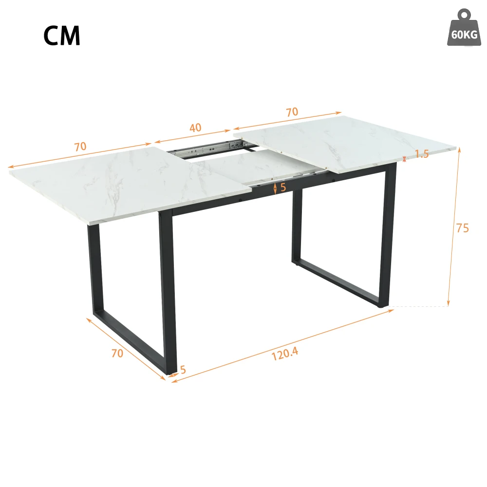- Taille de la table à manger : cette table à manger mesure 120 cm (L) * 80 cm (B) * 76,5 cm (H). Le plateau de la table peut également être rallongé jusqu’à 160 cm, ce qui est raisonnable et de conception pratique.