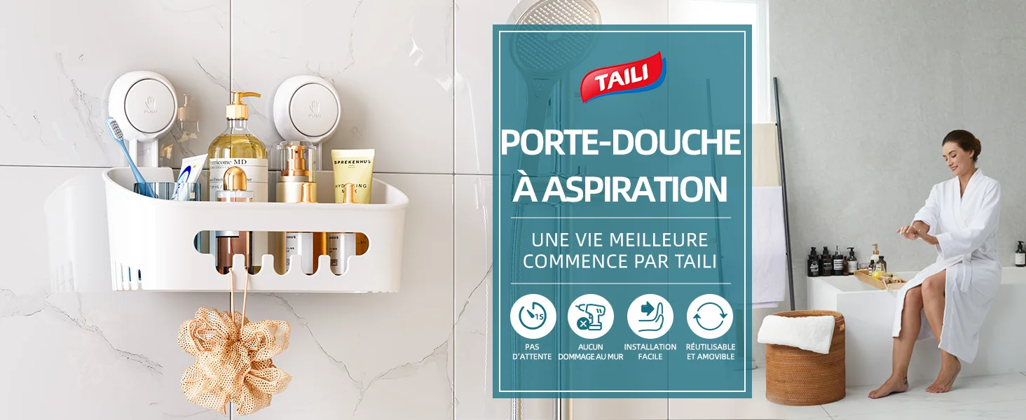 Soyez le premier à laisser votre avis sur “TAILI éTagèRe de Douche Robuste avec Ventouse sous vide, Panier de Rangement Amovible sans PerçAge pour Shampoing et Articles de Toilette Organisateur de Cuisine, Salle de Bain, Chambre à Coucher”
