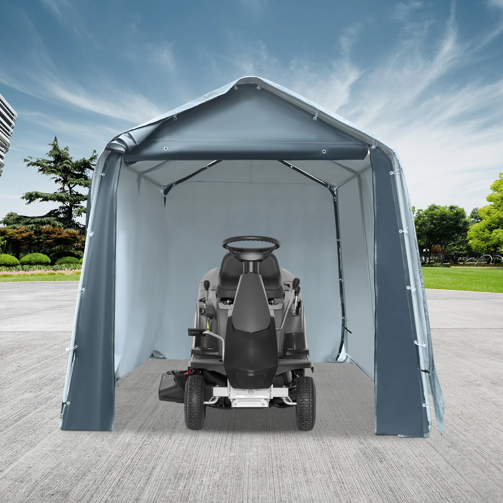 Grande capacité :L’abanon de grande taille (7,87*7,87*7,87 pieds) vous offre 61,35 pieds2 d’espace intérieur, faisantil est facile de ranger des vélos, des motos, des tondeuses à gazon, etc., vous permettant de vous tenir debout et de marcher à l’intérieur du hangar, rendant les activités plus pratiques.